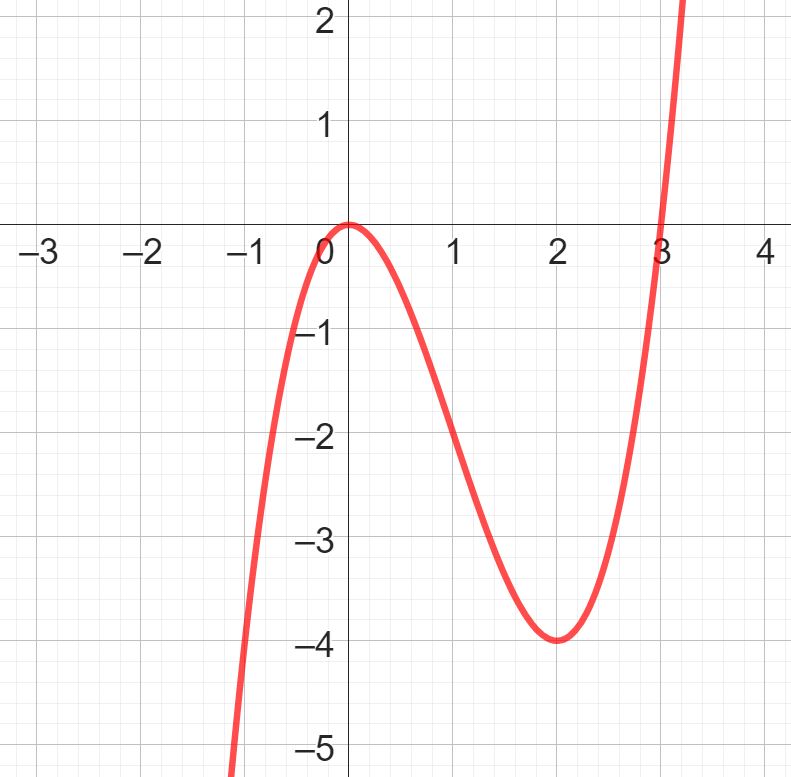 Aufgabe: Bestimme die Nullstellen der Wendetangente dieser Funktion vierten Gerades mit der Funktionsgleichung f(x) = x^3 - 3 x^2 .